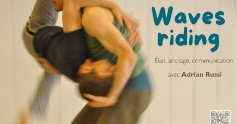 En parallèle de cette exploration intérieure, nous nous entraînerons à écouter la gravité, à suivre l’élan et à trouver, par la chute et le balancement, une danse faite de vagues, de flux et de mouvements ondulatoires. Ceux-ci ne sont parfois perceptibles que de l’intérieur et à peine visibles de l’extérieur — comme par exemple dans la petite danse — mais peuvent aussi prendre des proportions très amples. Qu’il s’agisse de rebonds puissants ou de circulations subtiles, l’important est de les sentir avec précision, de laisser les impulsions se traduire en mouvements concrets, tout en gardant l’espace nécessaire pour que la dynamique circule. C’est là tout l’art : celui de surfer la vague du mouvement et de l’enthousiasme partagés !