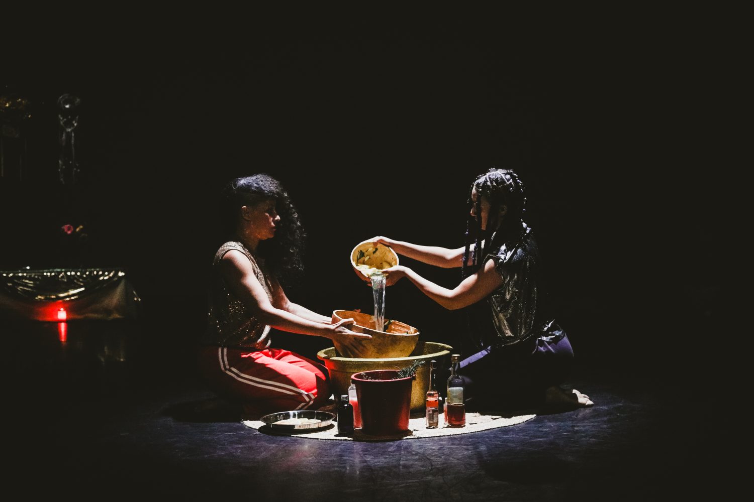 Entre traditions caribéennes, héritages afro-descendants et imaginaires futuristes, les performeuses, Chloé Timon et Annabel Guérédrat, guident les participant·es dans un cercle de transformation collective où les corps, la musique et les gestes deviennent langage de soin, de résistance et d’émancipation. Véritable célébration du féminin, du sacré et du vivant, la performance ouvre un espace de communion artistique et énergétique, à la fois intime et fédérateur. Cette performance est ainsi conçue comme une quête de vision, un hommage à Oxun, divinité des eaux douces, associée à la richesse spirituelle, matérielle et à l’émancipation des femmes.