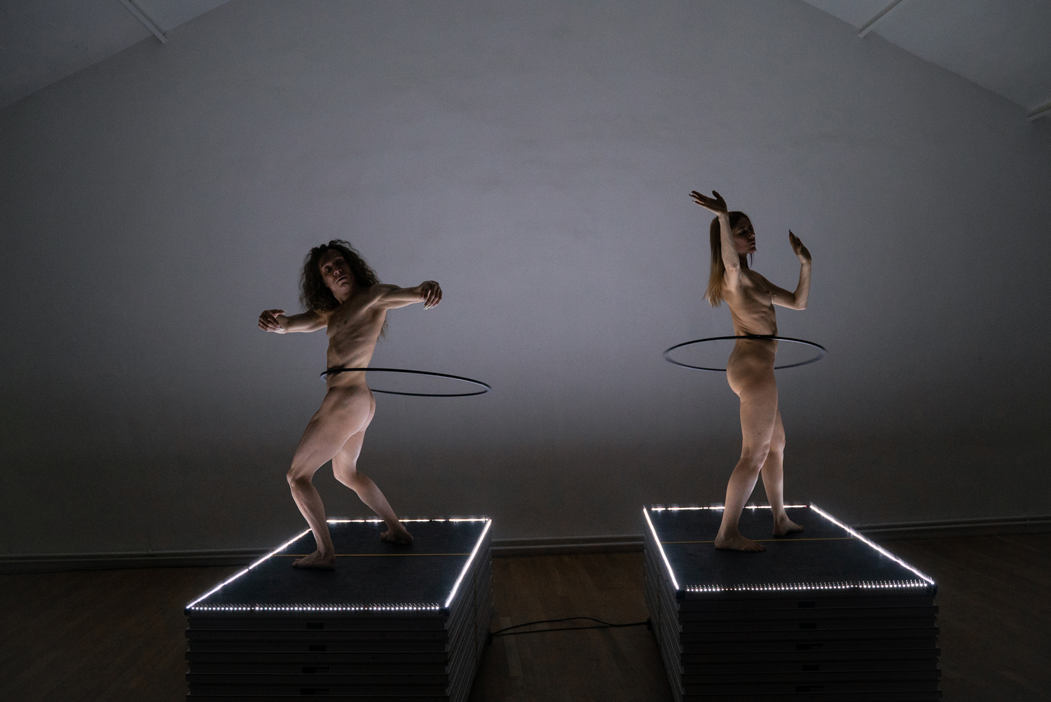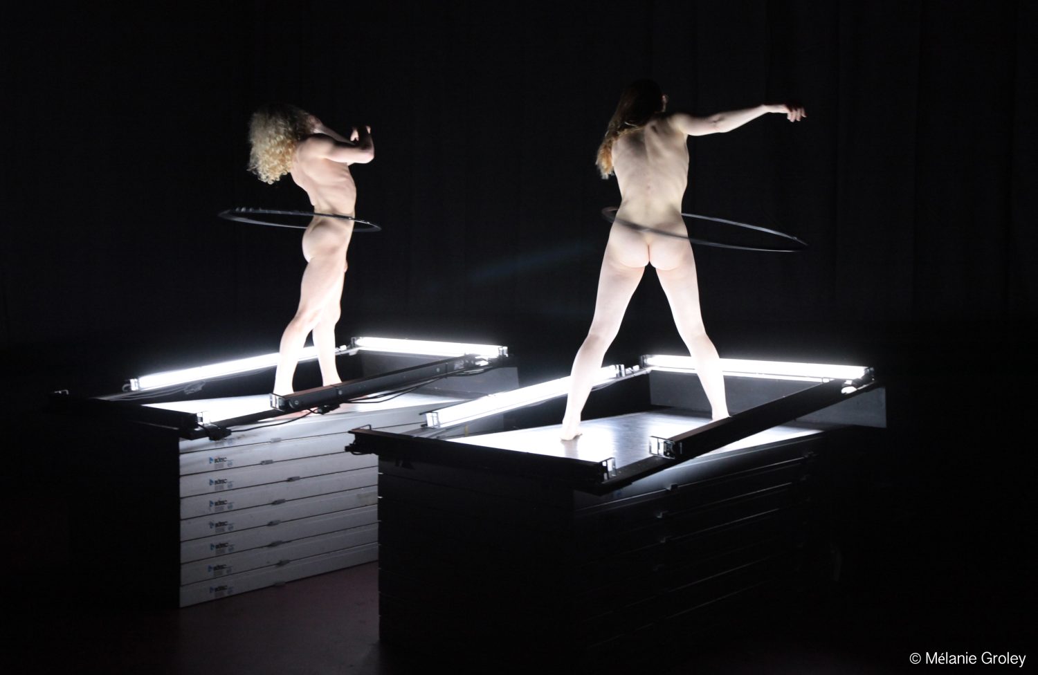 Un duo audacieux qui réinvente le hula hoop en outil chorégraphique, entre extase aride, hypnose cruelle et danse souveraine captive !