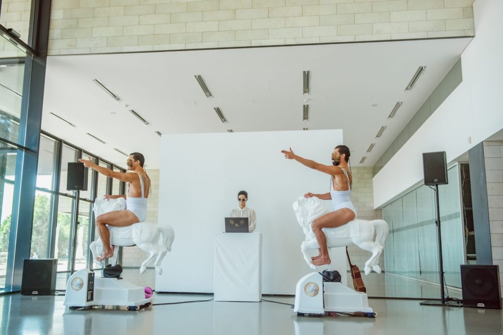 Sur leurs chevaux mécaniques, Jonas&Lander font du public le déclencheur inattendu d’une performance qui interroge les liens entre artistes et spectateur·rices, entre tension et surprise.