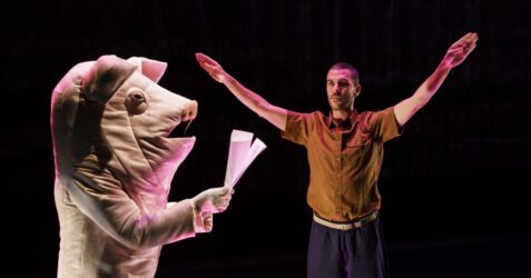 Entre danse et poésie sonore, Valeria Giuga et Anne-James Chaton mettent en résonance des éléments techniques de la chorégraphe Mary Wigman avec le roman "La Ferme des animaux" de George Orwell, dans leur nouveau spectacle "ZOO".